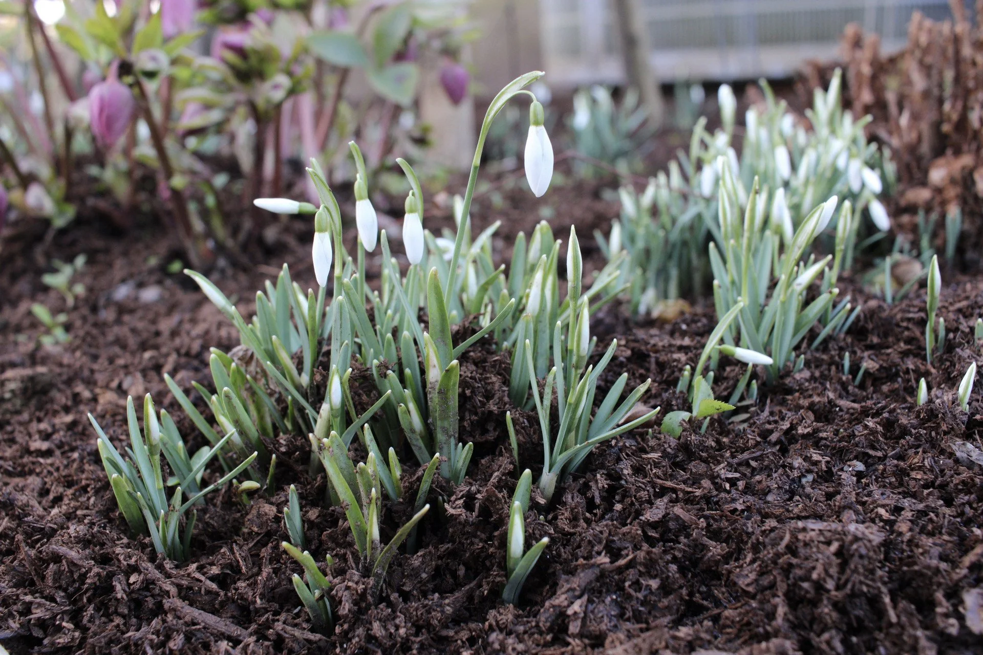 These snowdrops at the Rogerson Clematis Garden start blooming in January