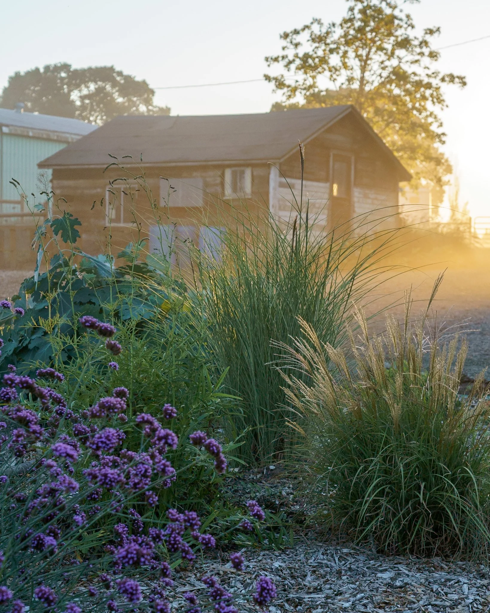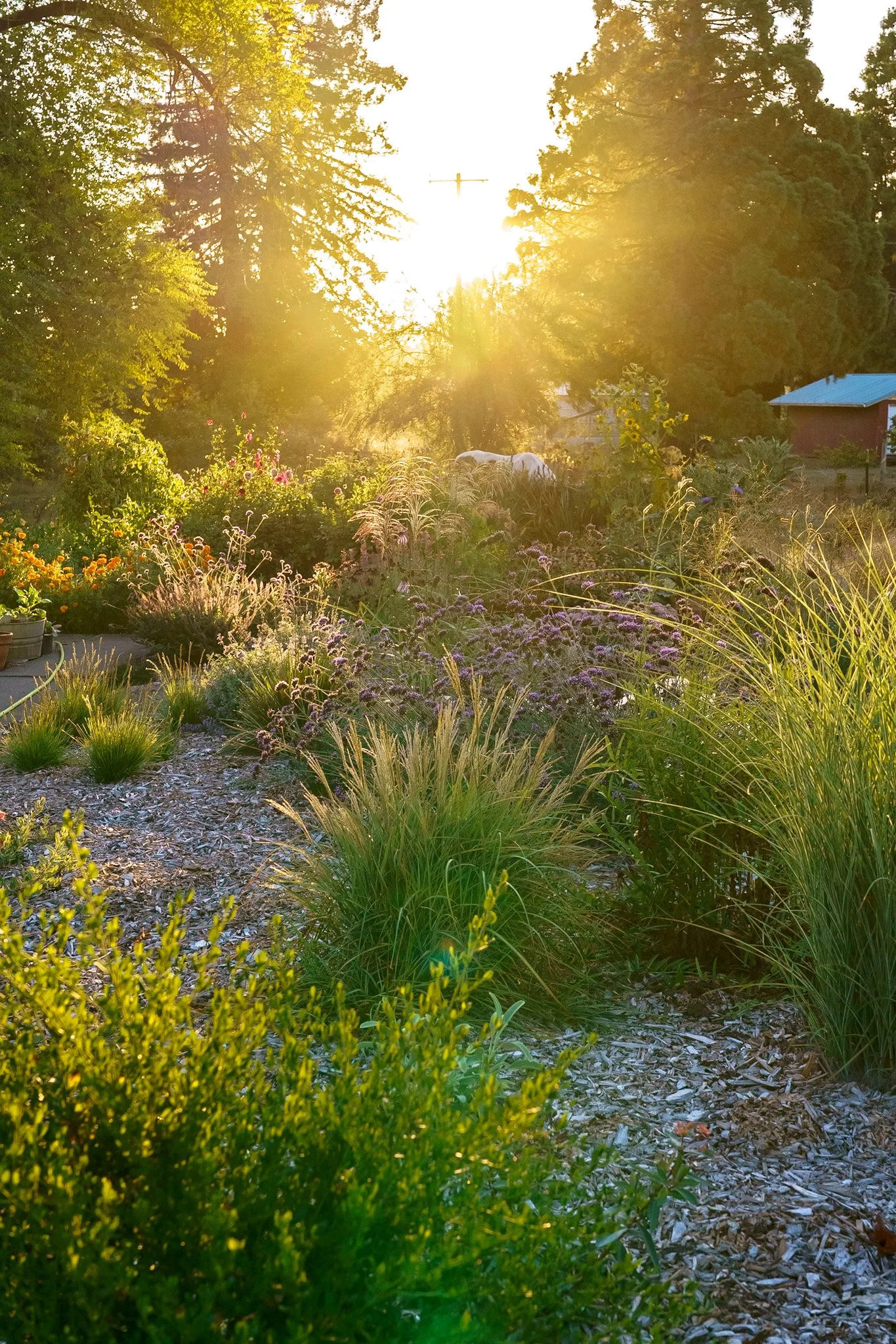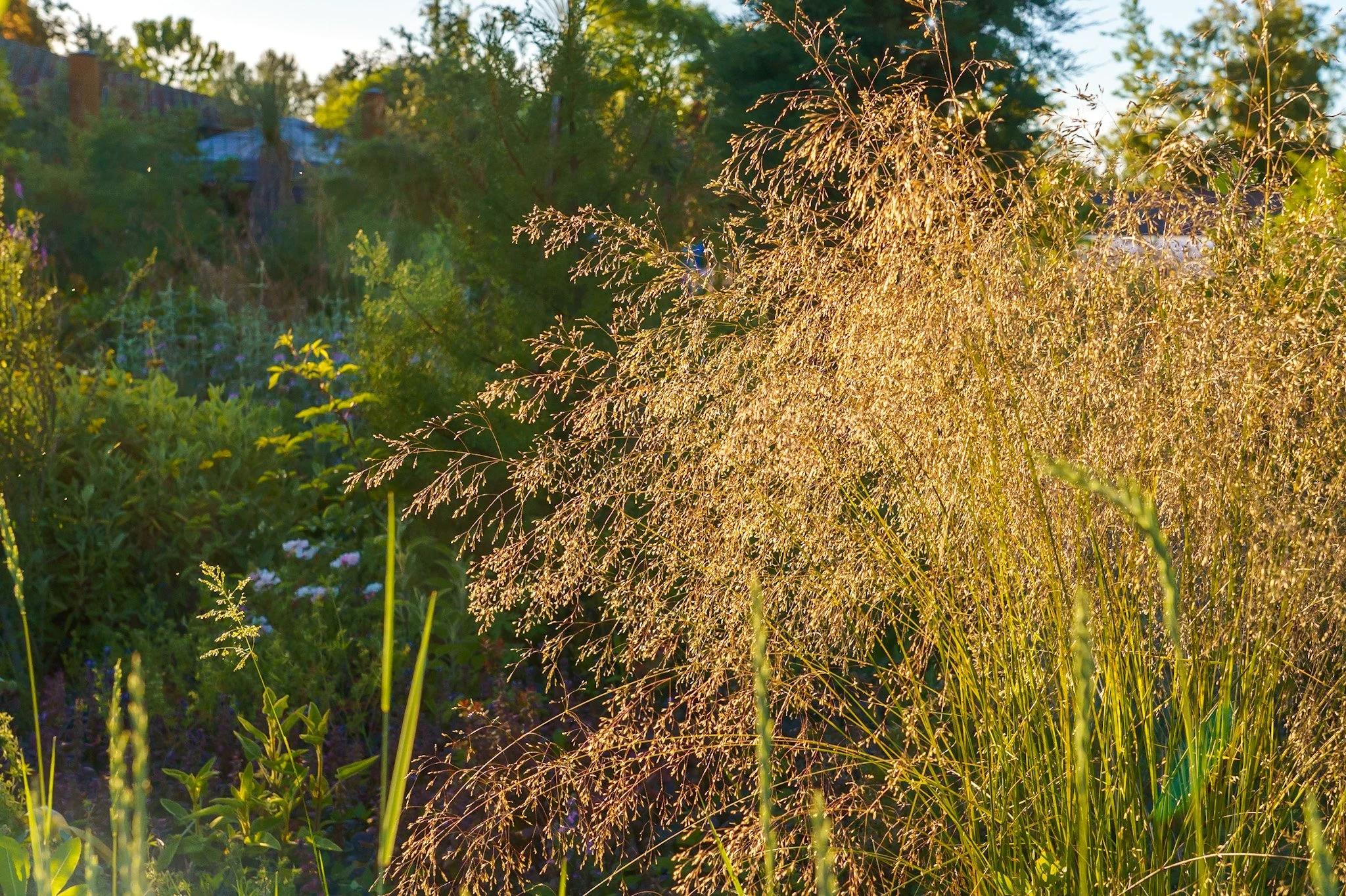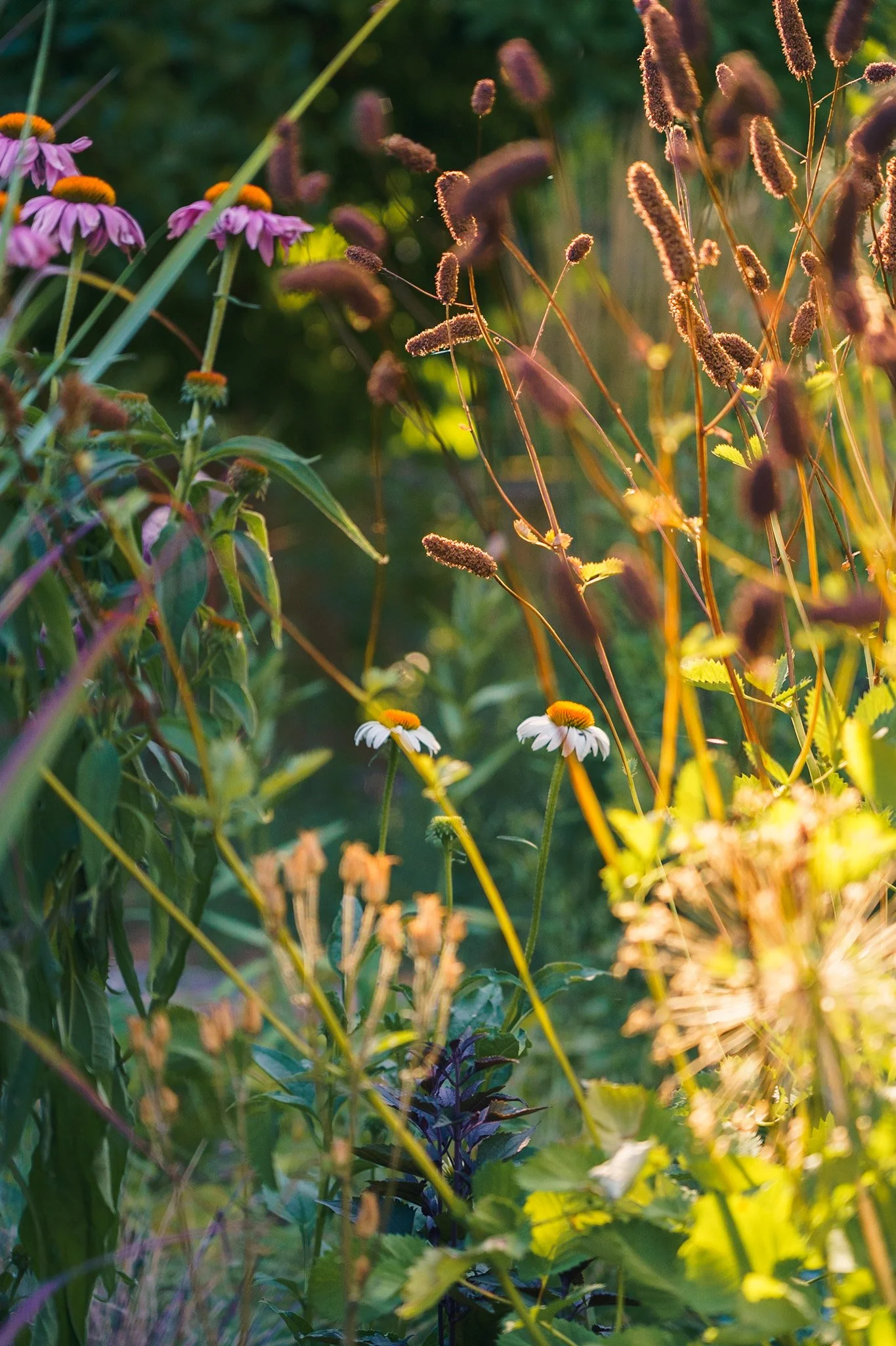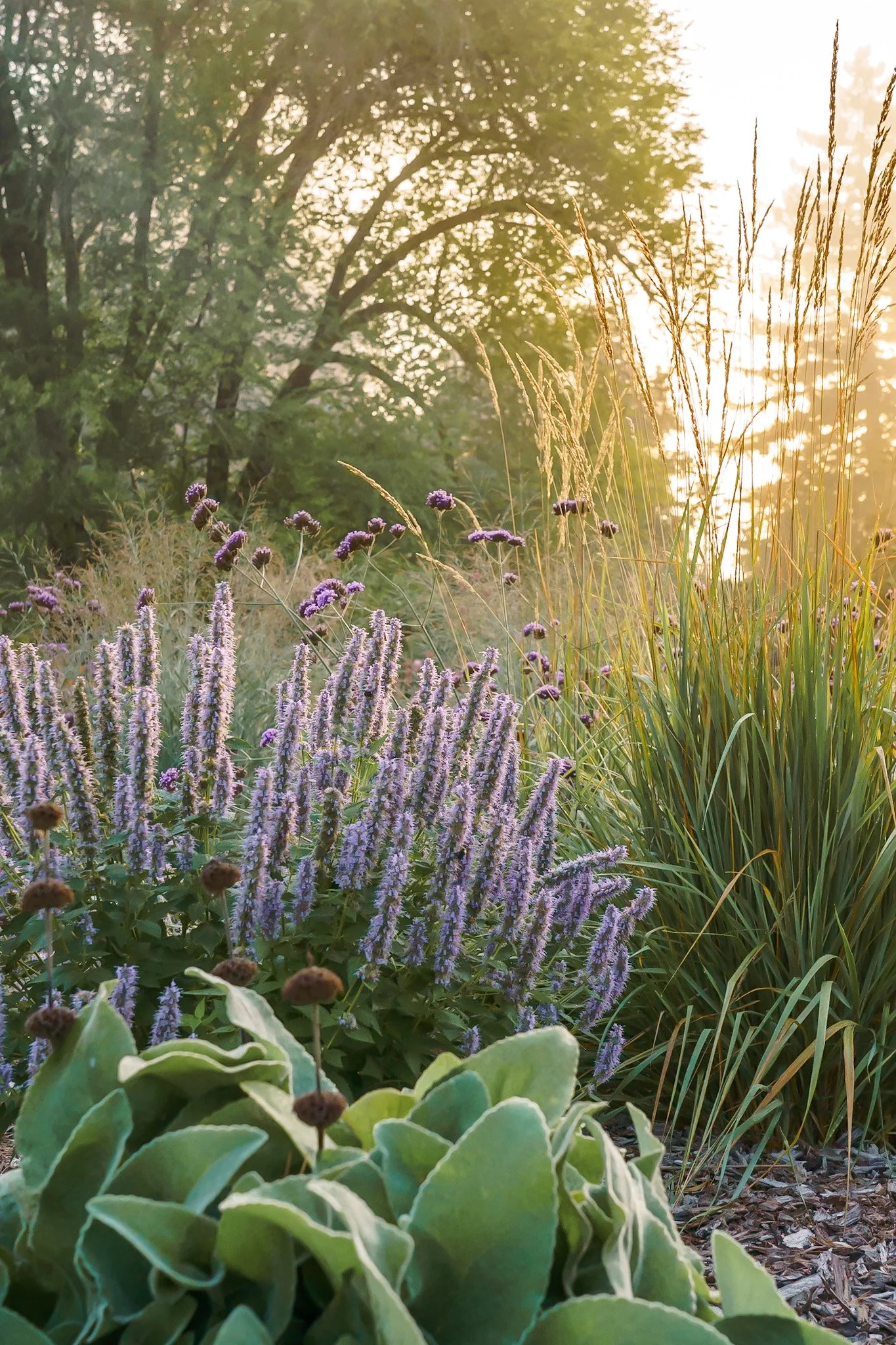 The prairie garden really glows at sunset. Spikes of Agastache look stunning against dark green grasses.