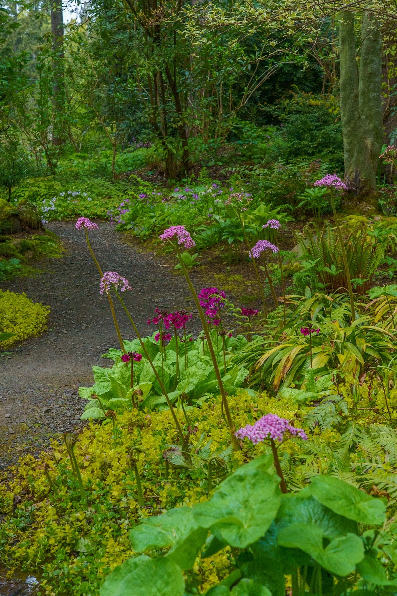 Tall primula love a moist, shaded space to spread out