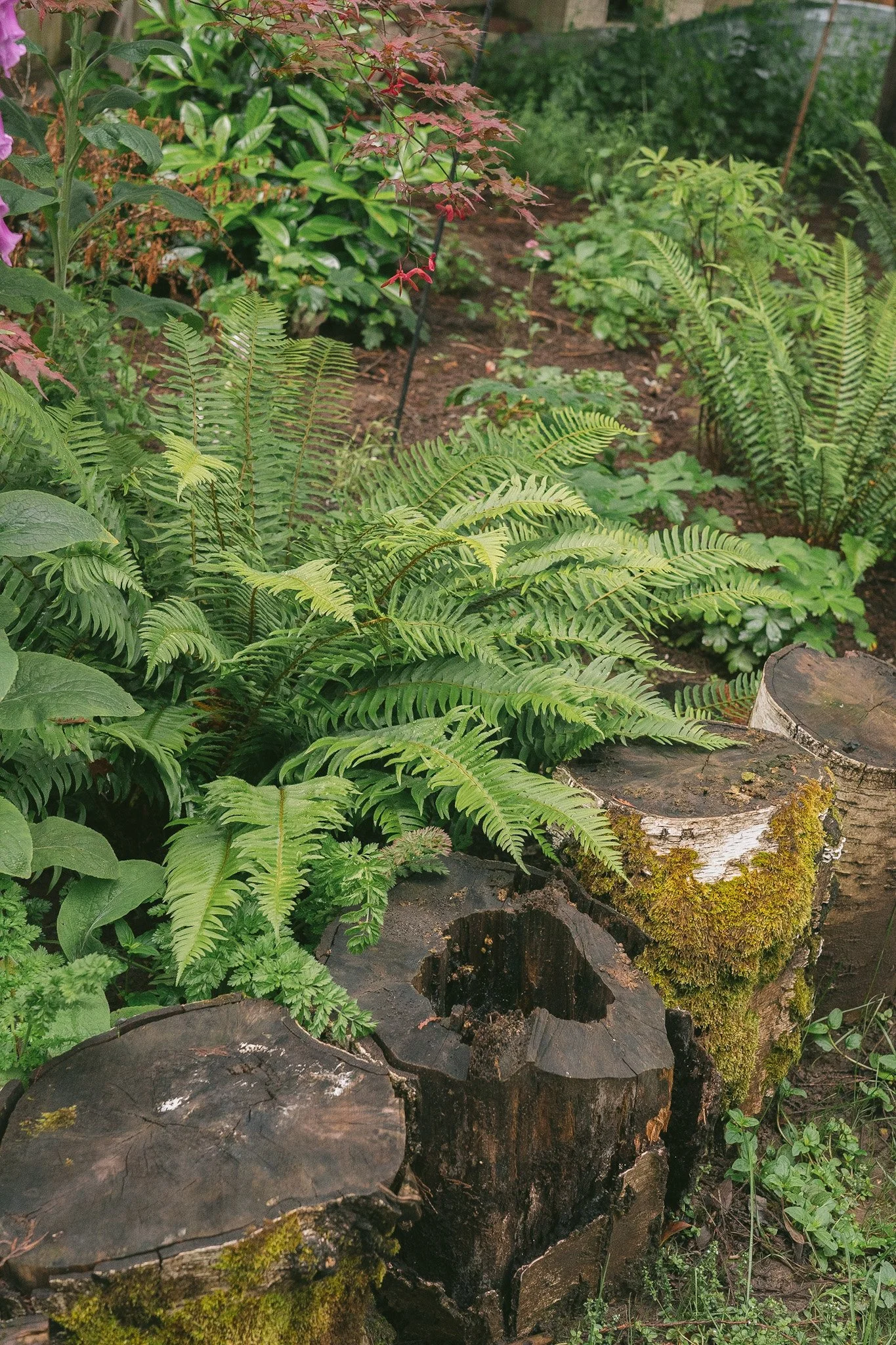 What I learned: A lot of woodland plants naturally bloom early in the year so you want to make sure there’s plenty of foliage and evergreen plants to keep the garden looking lush. Think ferns, hostas, and hydrangea to give a longer season of interest.