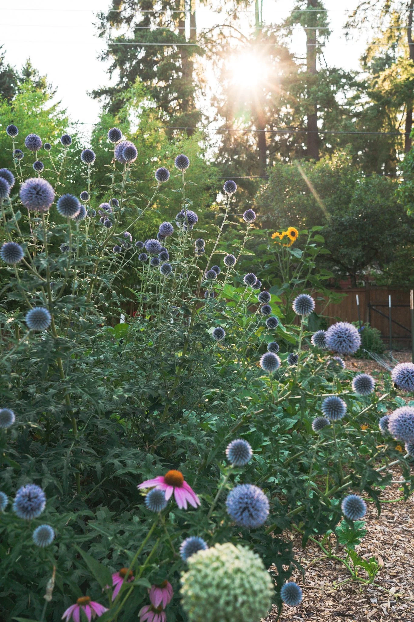 Echinops has stunning blue globes that grow tall and blend perfectly with prairie-style grasses