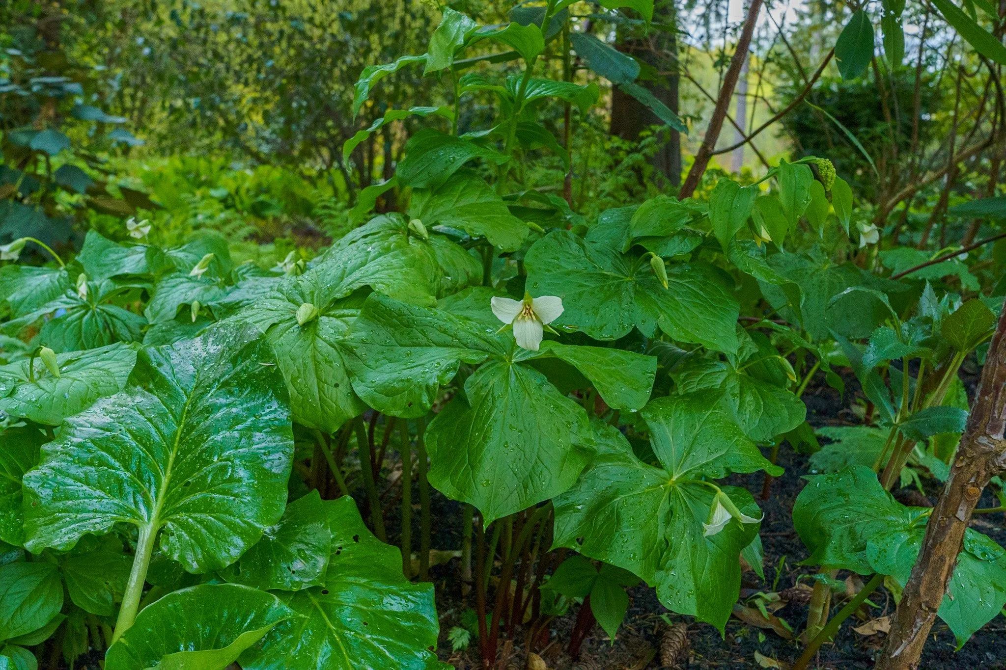 Trillium thrive in a shady woodland garden