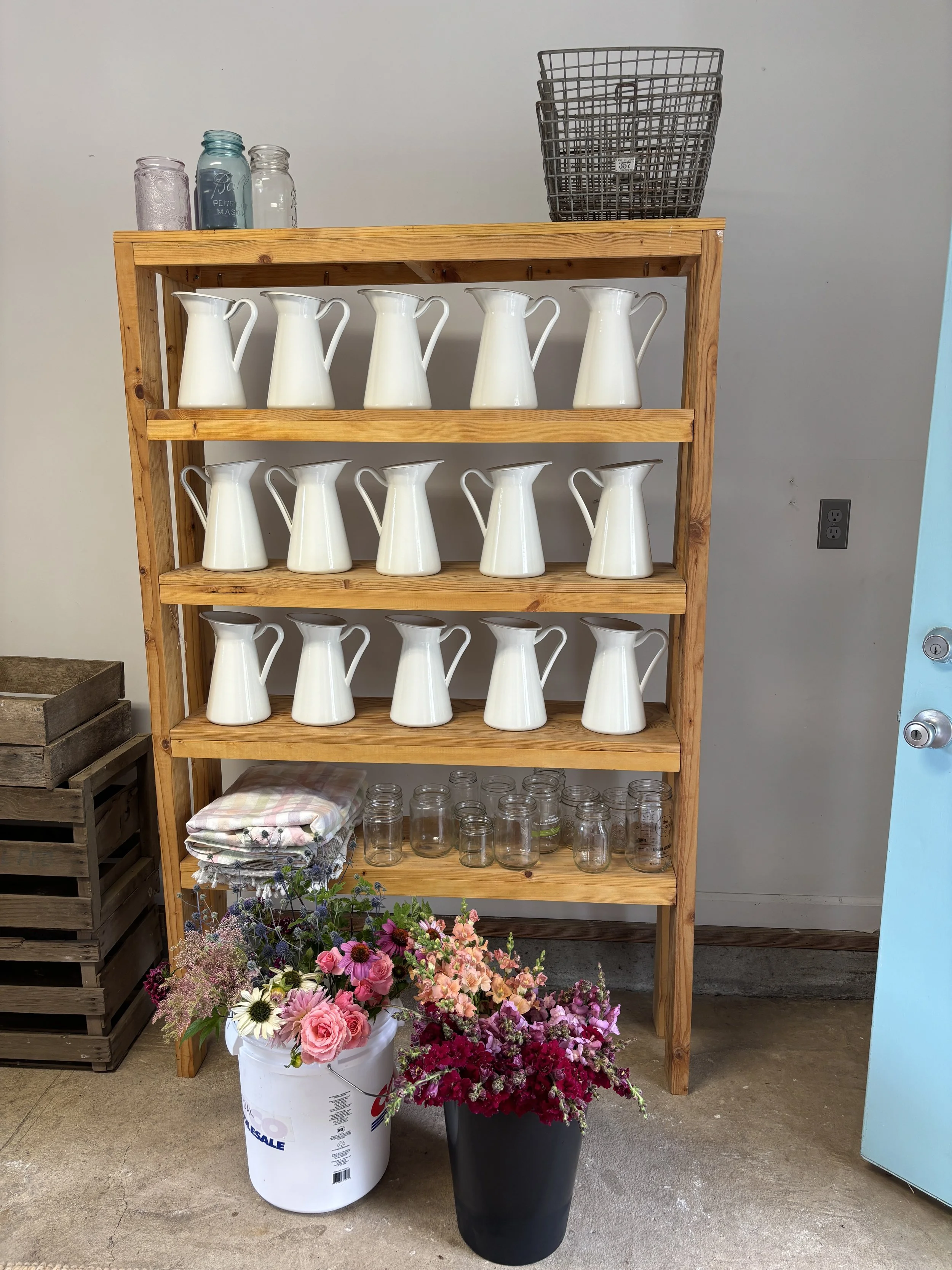 I’ve been hard at work cleaning up our little farm store on the property and getting it ready for visitors. It’s the perfect little studio space to make bouquets and meet with customers.
